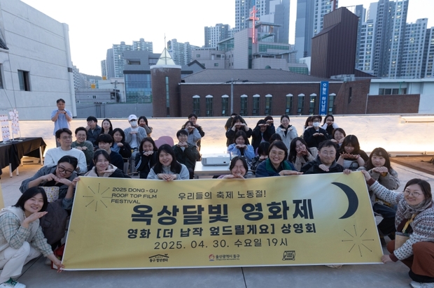 [우리집신문=감자] 울산 동구는 4월 30일 저녁 7시 동구청년센터 옥상에서 노동절을 기념하여 ‘옥상달빛영화제’를 진행했다. 이날 영화제에는 배은정 대표(커뮤니티 시네마 커튼콜)와 울산 동구 출신인 영화 ‘더 납작 엎드릴게요’ 김은영 감독, 청년 40여 명이 참여했다. 옥상달빛영화제에서는 ‘더 납작 엎드릴게요’ 영화 상영 및 노동절 퀴즈, 관객과의 대화 등의 행사가 진행됐다. ‘더 납작 엎드릴게요’는 법당 옆 출판사 입사 5년 차이면서 여전히 막내인 혜인(김연교 배우)의 좌충우돌 사회생활을 담은 독립영화이다. 김은영 감독은 관객과의 대화를 통해 “내가 태어나고 자란 동구에서 영화를 상영하게 되어서 기쁘며, 청년들의 이야기를 허심탄회하게 나누게 되어 의미 있었다.”라고 밝혔다. 동구청년센터 관계자는 “노동절을 기념해 청년들이 직장생활에서 겪는 고충에 대해 유쾌하고 진솔하게 이야기 나누고 공감하는 시간이 됐기를 바란다”라고 말했다.