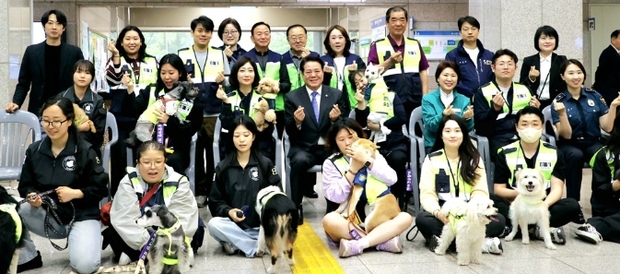 [우리집신문=감자] 올바른 반려동물 문화 정착과 안전한 마을 조성을 위해 안양시에 거주하는 반려견과 견주가 순찰에 나서는 ‘반려견 순찰대 양반견’이 본격 활동에 나섰다. 1일 오전 11시 시청 본관 1층에 모인 반려견 순찰대 9개 팀은 활동 선서를 한 뒤 시청 민원실 앞에서 반려견 동물등록 의무 등 견주의 준수사항을 지도·홍보하며 첫 활동을 시작했다. 반려견 순찰대는 관내에 거주하는 반려견과 견주가 한 팀을 이뤄 마을을 순찰하며 ▲동물보호 및 복지 인식 개선 ▲견주 준수사항 홍보 ▲생활 안전 활동을 펼치는 프로그램으로, 시는 지난 3월 총 9개 팀을 선발했다. 공모로 선정된 안양시 반려견 순찰대의 명칭은 ‘양반견’으로, ‘안양 반려견 순찰대’라는 뜻을 담고 있다. 앞서 순찰대는 지난 4월에 3차례에 걸쳐 반려견 예절 교육과 순찰 기본 교육을 이수, 기본 소양과 반려견 관리 능력을 갖췄다. 명예동물보호관으로 위촉된 순찰대는 오는 11월까지 주 1회 이상 개별 순찰, 월 1회 이상 단체 순찰에 나설 계획이다. 이날 활동 선서에는 그동안 교육을 함께 했던 안양동안경찰서 관계자와 연성대 반려동물산업과 교수, 학생 및 소속 훈련견들이 함께 참석했다. 시는 반려견 순찰대가 안전 사각지대 및 생활 불편사항 점검과 함께, 다른 반려인들에게 모범을 보이며 건강한 반려동물 문화를 확산하는 홍보대사 역할을 수행할 것으로 기대하고 있다. 시는 이번 시범사업이 성공적으로 정착할 경우 향후 사업 확대를 적극 검토한다는 계획이다. 최대호 안양시장은 “자발적으로 봉사에 나서준 순찰대원들께 감사드린다”고 격려하며 “가족의 일원인 반려동물과 시민이 참여하는 반려견 순찰대와 함께 올바른 반려동물 문화를 전파해 더욱 살기 좋은 안양시를 만들어가겠다”고 말했다.