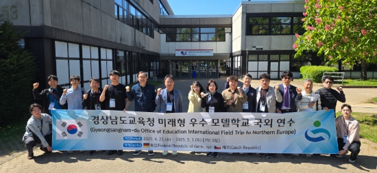 [우리집신문=감자] 경상남도교육청은 경남형 미래학교 공간 재구조화 사업의 질을 높이고 발전 방향을 찾기 위해, 4월 23일부터 5월 1일까지 체코와 독일의 우수 학교 및 교육기관을 방문했다. 주요 내용은 ▲미래교육을 위한 교수·학습 공간 탐색 ▲미래형 교육과정과 연계한 공간 혁신 사례 수집 ▲건축가와 협업한 공간 최적화 사례 발굴 ▲진로 및 평생교육 등 지역사회와 연계한 학교 공간 재구조화 모델 탐색 등이다. 연수단은 황둘숙 행정국장을 단장으로, 미래학교 공간 재구조화 업무 담당자와 관계자, 손덕상 경상남도의회 교육위원 등 총 16명으로 구성됐다. 이들은 체코와 독일의 미래교육 현장을 방문해, 경남에 적합한 미래학교 공간 모델을 모색했다. 이 외에도 연수단은 방문국 기관의 교육 활동을 살펴보고, 학교 건축 철학과 디자인, 학교 공간 재구조화 방향, 지역사회와 연계한 특색 있는 학교 시설 운영 방안 등을 탐색했다. 황둘숙 행정국장은 “이번 해외 연수를 통해 경남형 미래학교 공간 사업에 국제적 안목을 더하고 학생들의 배움과 삶이 유기적으로 연결되는 지속가능한 미래형 학습 공간을 만들겠다”라고 밝혔다.