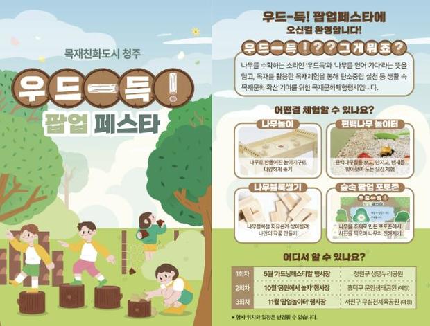 [우리집신문=감자] 청주시는 오는 10일부터 11일까지 2일간 청원구 생명누리공원에서 목재문화 체험행사 ‘우드-득! 팝업페스타’를 운영한다고 2일 밝혔다. 올해 처음 진행되는 행사로, 나무를 수확하는 소리인 ‘우드득’과 나무를 얻어간다는 ‘득(得)’의 의미를 담아 이름이 지어졌다. 행사장에서는 친환경 탄소저장 소재인 목재를 활용한 △나무 놀이터 △나무블록쌓기 △숲속 팝업 포토존 등이 설치돼, 아이들과 함께 온 가족이 생활 속 목재 문화를 즐기며 탄소중립을 실천할 수 있도록 한다. 한편, 시는 우드득 팝업페스타를 올해 3회에 걸쳐 운영할 예정이다. 두 번째 팝업은 10월 중 ‘공원에서놀자’ 행사장에서, 세 번째 팝업은 11월 중 ‘팝업놀이터’ 행사장에서 진행된다. 시 관계자는 “우드득 팝업페스타는 목재친화도시 청주로 나아가기 위한 첫 번째 목재문화 체험행사”라며 “아이들이 목재와 함께하면서 목재를 이용하는 것이 탄소중립을 실천하는 방법이라는 것을 배울 수 있도록 하겠다”고 밝혔다.