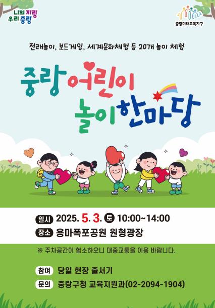 신나는 어린이날! 중랑구 곳곳에 놀거리·체험 가득!5월 3일 ‘중랑 어린이 놀이 한마당’ 개최…용마폭포공원서 신나는 체험 가득