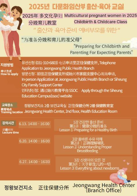 [우리집신문=감자] 시흥시는 다문화가정 임산부와 가족을 위한 맞춤형 출산ㆍ육아 강좌를 오는 6월에 운영하기로 했으며, 이에 앞서 5월부터 참여자를 모집한다. 낯선 환경 속에서도 건강하고 안정된 출산을 돕기 위한 세심한 배려가 담긴 프로그램이다. 이번 프로그램은 타국에서 가정을 이루고 출산을 준비하는 다문화 임산부들의 현실적인 어려움을 해소하고자 마련됐다. 다양한 국가의 문화적 차이를 존중하는 교육방식을 바탕으로, 출산과 육아에 꼭 필요한 실용 정보를 전달할 예정이다. 특히 언어장벽을 해소하기 위해 통역 지원과 다국어 자료도 함께 제공돼 참여자들이 교육 내용을 더욱 쉽게 이해하고, 실생활에 활용할 수 있도록 준비할 계획이다. 강의는 6월 13일, 20일, 27일 매주 금요일 오후 2시부터 4시까지 총 3회에 걸쳐 운영된다. 출산 교육 전문 강사가 진행하며, 교육 내용은 ▲(1회차) 출산 및 산후 회복 과정에 대한 이해 ▲(2회차) 신생아 돌봄 기초 ▲(3회차) 모유수유 클리닉으로 구성돼 실습과 이론을 병행한 알찬 교육으로 구성됐다. 시는 이 외에도 임산부와 영아의 건강 증진을 위해 산전 요가와 베이비 마사지교실, 모유수유클리닉, 오감놀이 프로그램을 함께 운영하고 있으며, 앞으로도 임산부와 가족들이 행복하고 건강하게 출산 및 육아할 수 있는 환경을 조성할 수 있도록 다양하고 혁신적인 프로그램을 지속적으로 제공할 예정이다. 프로그램 신청은 교육일 전월 1일부터 시흥교육캠퍼스 ‘쏙(SSOC)’ 누리집 또는 유선 및 방문 신청을 통해 선착순으로 가능하다.