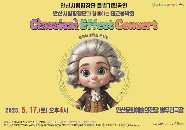 [우리집신문=감자] 안산시는 오는 17일 안산문화예술의전당 별무리극장에서 안산시립합창단 기획공연인 태교음악회 ‘클래식 이펙트 콘서트’를 개최한다고 2일 밝혔다. 이번 공연은 관내 거주하는 예비 부모들이 쉽게 즐길 수 있는 힐링 태교음악회다. 시민들이 자주 접해본 ‘반짝반짝 작은 별’ 작곡가 모차르트의 곡과 광고 음악으로 자주 쓰이는 오페라 라크메의 ‘꽃의 2중창’, 한국 가곡 ‘첫사랑’ 등의 합창 무대와 피아노 독주 무대 등으로 꾸며진다. 또한 현악기 스트링의 협연으로 관객들과 가깝게 소통할 수 있는 무대가 준비됐다. 아울러, 임산부를 위한 포토존도 설치돼 즐거움을 한층 더한다. 관람료는 전석 5천 원이다. 예매는 안산문화예술의전당과 인터파크 티켓 누리집이나 전화로 가능하다. 박종홍 문화체육관광국장은 “임신과 출산을 준비하는 예비 부모들을 응원하기 위해 처음 선보이는 음악회인 만큼, 많은 시민들이 방문해 공연을 즐겨주시기를 바란다”고 말했다.