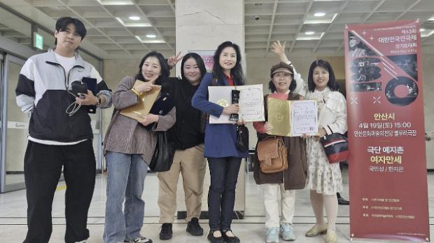 [우리집신문=감자] 안산시는 최근 (사)한국연극협회 안산지부의 극단 예지촌 ‘여자만세’가 제43회 대한민국연극제 경기도대회에서 은상을 수상했다고 2일 밝혔다. 대한민국연극제 경기도대회는 대한민국연극제 전국대회의 예선 성격으로 열렸다. 지난 4월 12일부터 4월 27일까지 용인문화재단 이벤트홀에서 경기도 17개 시군 대표팀이 참가한 가운데 대상작에만 주어지는 본선행 티켓을 두고 치열한 경쟁을 벌였다. 안산시 대표로 경연에 참여한 (사)한국연극협회 안산지부의 극단 예지촌 ‘여자만세’(국민성 작, 한지은 연출)는 가족을 위해 헌신하며 살아온 ‘여자’가 남편의 외도와 이혼 통보의 위기 속에서 결혼을 앞둔 딸, 구박 많은 시어머니와 갑자기 찾아온 손주의 여자친구와 한 지붕 아래 살며 겪는 이야기를 다루고 있다. (사)한국연극협회 안산지부는 이번 은상 외에도 우수연기상(강영하)과 신인연기상(김슬기)도 거머쥐며 3개 부문 수상이라는 쾌거를 달성했다. 이민근 안산시장은 “안산시 연극예술의 저력을 다시 한번 보여주신 (사)한국연극협회 안산지부에 축하와 감사의 인사를 전한다”며 “앞으로도 연극과 문화예술의 발전을 위해 지원을 아끼지 않겠다”고 말했다.