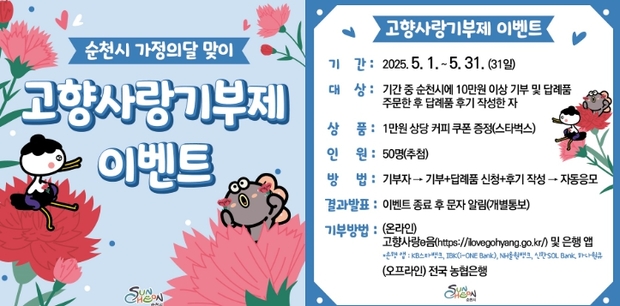순천시, 고향사랑기부제 가정의 달 맞이 특별 이벤트 실시