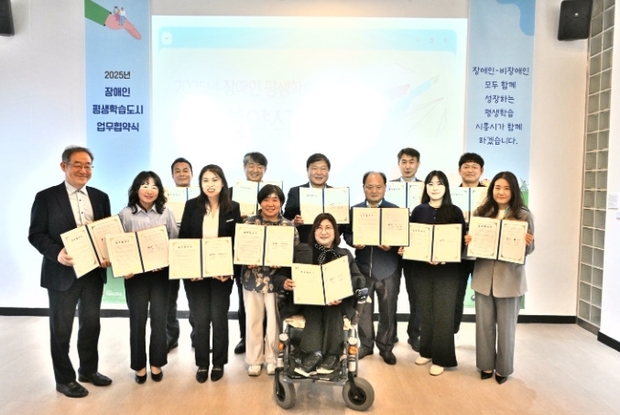 [우리집신문=감자] 시흥시는 지난 5월 2일 시흥ABC행복학습타운 열림관 1층 갤러리에서 ‘2025년 장애인 평생학습도시’ 운영을 위해 협력 기관과 업무 협약을 체결했다. 이번 협약은 시흥시가 교육부 주관 ‘2025년 장애인 평생학습도시’로 선정됨에 따라, 지역 내 다양한 관계기관과의 협력을 통해 장애인 평생학습 기반을 체계적으로 구축하고, 지속가능한 지역 네트워크를 조성하기 위한 첫걸음으로 마련됐다. 이날 행사에는 장애인 평생학습도시 참여 기관의 대표 및 관계자 등 30여 명이 참석한 가운데, 장애인의 평생학습 기회를 확대하고, 포용적 학습 환경을 조성하기 위한 상호 협력의 뜻을 다졌다. 협약에 따라 각 기관은 ▲장애인 평생학습 프로그램 운영 협력 ▲자원 및 정보 공유 ▲맞춤형 학습지원체계 구축 ▲지속가능한 네트워크 운영 등 다양한 영역에서 상호 협력해 나가기로 했다. 박승삼 시흥시 부시장은 “장애인에게 지속적인 학습은 단순히 지식을 얻는 것을 넘어, 자신의 가능성을 발견하고 더 나아가 자립과 삶의 질을 높이는 힘이 된다”라며 “이번 협약을 통해 시는 함께하는 동반자로서, 지역 내 장애인 평생학습이 뿌리내릴 수 있도록 노력하겠다”라고 밝혔다.