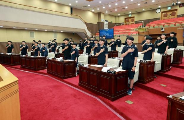 [우리집신문=감자] 충북도의회는 14일 본회의장에서 청주남중학교 학생 41명을 대상으로 제117회 청소년 의회교실을 운영했다. 청소년 의회교실은 학생들이 ‘1일 도의원’이 되어 의장 선거, 안건 심의, 자유발언 등 실제 의정활동을 체험해 보는 프로그램으로 지방의회가 어떤 역할을 하는지 직접 경험할 수 있다. 이번 의회교실에 참여한 학생들은 무기명 투표로 의장을 선출하고 ‘교복 자유화 조례안’, ‘1학년 시간표 바꾸기 건의안’, ‘교실 뒤편 사물함 교체 건의안’ 등 총 3건의 안건에 대해 찬반 토론과 전자투표로 표결을 진행했다. 학생들은 또 ‘학교 폭력이 목격되면 바로 처벌해야 합니다’, ‘학생들은 과한 장난을 멈춰야 합니다’, ‘학생들의 사복 제한을 늘려야 합니다’ 등을 주제로 2분 자유발언을 이어갔다. 학생들은 진지하게, 때로는 열정적으로 자신의 의견을 표현했다. 의회교실에 참석한 이옥규 의원(청주5)은 “학생들이 민주주의 의사결정 과정을 직접 체험해 보고, 지방의회의 역할을 이해하는 계기가 됐길 바란다”고 말했다.