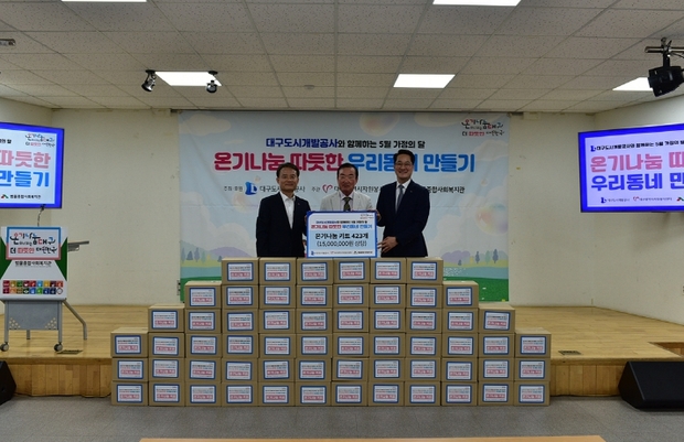 [우리집신문=감자] 대구도시개발공사는 5월 가정의 달을 맞아 직영관리 중인 범물용지 아파트 입주민 중 80세 이상 1인 가구를 대상으로 ‘온기나눔으로 따뜻한 우리동네 만들기 행사’를 마련해 홀로 거주하는 고령 입주민의 건강과 안전을 위해 다양한 지원을 제공하는 사랑나눔 행사를 13일 개최했다. 가정의 달을 맞아 소외된 고령자 1인 가구를 보호하고 이웃과 더불어 함께 따뜻한 온정을 나눌 수 있는 따뜻한 주거공간 조성을 위해 마련된 이번 행사의 주요 내용은 △사랑의 온기나눔 키트(식료품 10종 키트) 제작 및 배부, △우수기능인 협회와 연계하여 이미용, 의료수선, 노후방충망교체, 전기점검(찾아가는‘ 마이스터 손길’), △어르신 초청 음악회(‘음악으로 여는 마음의 문’), △보건소 연계를 통한 ‘어르신 건강진단 프로그램’ (치매선별, 절주, 심내혈관홍보 등), △건강·안전 모니터링 등이다. 이날 행사에 정명섭 사장을 비롯한 임직원 10여 명은 자원봉사자들과 함께 범물용지 영구임대 입주민들과 따뜻한 온정을 나누며 더불어 사는 사회를 구현했다. 공사는 해마다 입주민 계층별 특성에 맞는 다양한 입주민 지원활동을 실시하고 있으며, 입주민들이 체감할 수 있는 주거복지사업을 위해 힘쓰고 있다. 정명섭 대구도시개발공사 사장은 “가정의 달을 맞아 이번 행사가 어르신들에게 실질적인 도움을 제공할 수 있어 매우 뜻깊은 시간이었다”며, “고령자 1인 가구가 빠르게 늘어나는 만큼 지속적으로 어르신들을 위한 계층별 맞춤 고객지원 활동을 통해 입주민들이 건강하게 생활하고, 공사가 사회적 책임을 다할 수 있도록 지속적으로 노력할 것이다”고 말했다.