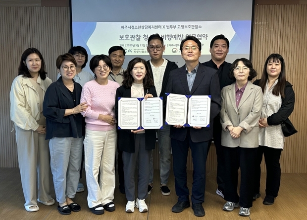 [우리집신문=감자] (재)파주시청소년재단 파주시청소년상담복지센터는 보호관찰청소년의 상담·지원 협력을 위하여 2025년 5월 12일 파주시청소년상담복지센터에서 고양보호관찰소와 업무협약을 체결했다. 이번 협약에는 보호관찰청소년에 대한 상담 및 통합지원서비스를 통해 건강한 사회 복귀를 촉진하며, 위기상황에 처한 청소년의 보호·지원을 통해 청소년의 재범을 방지하는데 서로 협력하기로 했다. 본 협력의 주요 내용은 ▲대상자 발굴 연계 및 사례관리를 위한 상호협력 ▲학업중단 위기 청소년 발굴·연계을 위한 상호협력 ▲각 기관이 보유하고 있는 전문적인 서비스 제공 및 협력 ▲필요사안에 대한 정보공유 및 협력, 지역사회 네트워크 형성 등이다. 파주시청소년상담복지센터 장문희 센터장은 "보호관찰청소년등 위기에 처한 청소년들을 위해 촘촘한 청소년사회안전망을 강화하는데 힘쓰고, 특히 파주관내 사각지대의 위기청소년을 발굴하여 지원하는데 주력하겠다“고 밝혔다. 고양보호관찰소 김남중 소장은 ”보호관찰은 지역 사회 내 유관기관과의 유기적인 관계형성을 통해 안전한 지역사회를 만들어가겠다“ 며 적극적 지원을 요청했고, ”보호관찰 청소년의 눈높이에 맞는 서비스를 제공하여 재범 없는 지역사회 일꾼으로 성장하도록 적극 협력 하겠다“고 밝혔다.