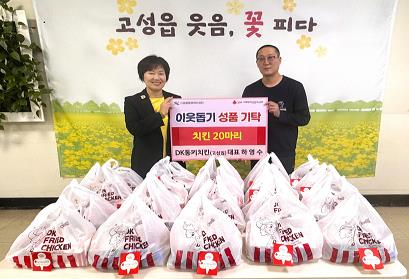 [우리집신문=감자] DK동키치킨 경남고성점 하영수 대표는 가정의 달을 맞이하여 5월 14일 고성읍행정복지센터를 방문해 저소득 가정 아동들에게 전해달라며 치킨 20마리를 기탁했다. 하영수 대표는 “가정의 달을 맞이하여 아이들에게 따뜻한 마음이 담긴 치킨을 전달하고 싶었다”라며, “앞으로도 작은 정성이더라도 나눔을 통해 이웃과 함께하는 행복한 지역사회를 만들고 싶다”라고 기탁소감을 밝혔다. 이현주 고성읍장은 “작년에 이어 지속적으로 나눔을 실천해주시는 대표님께 깊은 감사를 전한다”라며, “기탁받은 물품은 지역의 저소득 가정 아동들에게 잘 전달하겠다”라고 말했다. 한편 기탁받은 치킨은 지역 저소득 가정 아동에게 직접 전달될 예정이다.