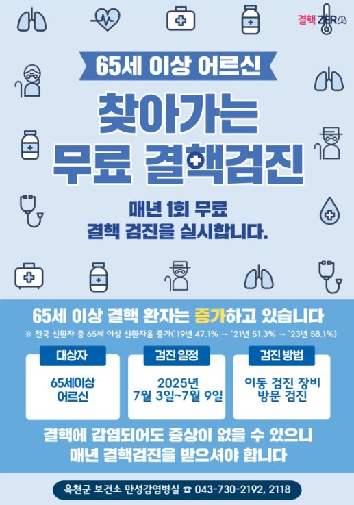 옥천군, 65세 이상 어르신 대상 ‘찾아가는 결핵검진’ 실시 7월 3일부터 9일까지, 관내 14개소 400여 명 대상 진행