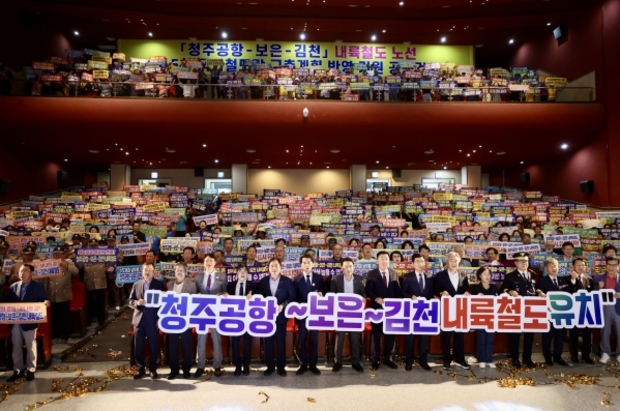 [우리집신문=감자] 보은군은 3일 보은문화예술회관에서 열린 ‘청주공항-보은-김천 내륙철도 제5차 국가철도망 구축계획 반영 기원 공동건의’ 행사가 인산인해를 이루며 성황리에 마쳤다고 밝혔다. 이날 공동건의 행사에는 김영환 충북지사, 최재형 보은군수, 이범석 청주시장, 배낙호 김천시장, 보은군의회 윤대성 의장, 보은군 철도유치위원회(위원장 유철웅), 주민 등 무더운 날씨에도 불구하고 보은군 철도 유치를 위해 800여 명이 참석한 가운데 △환영사 △인사말 △홍보영상 상영 △노선 설명 △공동건의서 서명 △퍼포먼스 △기념촬영 순으로 주민들의 큰 호응 속에 진행됐다. 이날 공동건의서 서명식에는 충북도지사, 청주시장, 김천시장, 보은군수가 함께 참여해 청주공항-보은-김천 내륙철도 노선이 제5차 국가철도망 구축계획에 반드시 반영돼야 한다는 지방의 강한 연대 의지를 공식화하는 등 내륙철도 건설의 당위성을 정부에 강력히 호소했다. 이어진 퍼포먼스에서는 참석자들이 내륙철도 연결의 꿈을 상징하는‘미씽링크 연결’을 통해 중부내륙의 국가 균형발전 실현을 염원하는 뜻을 하나로 모았다. 청주공항-보은-김천 내륙철도는 청주공항에서 보은을 거쳐 김천까지 연결되는 총연장 96.1km 단선 전철 노선으로 △청주공항 활성화, △철도 소외지역인 보은군의 인구소멸위기 극복, △김천을 통한 전국 철도망의 완성과 수도권~중남부 내륙지역의 새로운 국가 성장축 형성에 기여할 것으로 기대하고 있다. 특히 보은군은 그간의 추진 노력과 성과를 재조명하며 철도 유치에 대한 강한 의지를 표명했다. 먼저 민·관이 하나 되어 철도 유치를 위한 범군민적 열정을 모으고 다양한 계층이 자발적으로 참여한 10만 서명운동을 통해 철도 유치 염원을 지역공동체 의지로 확산시키는 성과를 거뒀다. 아울러 철도 유치의 필요성과 기대효과에 대한 교육과 홍보를 통해 지역민들의 이해를 높이고 염원을 하나로 모으는 데 힘을 쏟았으며, 정부·국회 수차례 방문 건의, 관계기관 간담회 등 다각적 활동을 전개하며 국가철도망 반영 필요성을 설득해 왔다. 군은 이날 채택된 공동건의서를 국토교통부 등 관계 부처에 공식 전달하고 오는 9월 국회에서 정책토론회를 개최하는 등 중앙정부 및 정치권의 공감대 형성과 정책적 기반 마련에 박차를 가할 계획이다. 최재형 보은군수는 “청주공항-보은-김천 내륙철도는 충청·경북 내륙의 국가균형발전을 위한 핵심 노선으로, 오늘 결집된 염원이 반드시 실현되도록 최선을 다하겠다”며 “보은군의 인구소멸위기 극복 및 지역경제 활성화를 위해 필수적인 사업인만큼 군민과 힘을 모아 모든 역량을 총동원해 반드시 유치의 결실을 맺겠다”고 말했다.