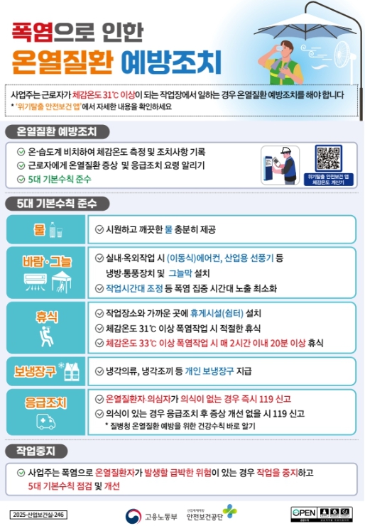 [우리집신문=감자] 전국적으로 예상보다 이른 기록적인 폭염이 이어지고 있는 가운데 거제시(시장 변광용)는 시민들의 안전을 위해 현장 중심의 폭염 대응 안전관리를 강화하기로 했다. 거제지역은 지난 2일부로 폭염주의보에서 폭염경보로 격상됨에 따라 폭염 위기단계를 주의단계에서 경계단계로 상향하고 폭염대응TF팀을 가동해 실시간 모니터링을 진행하며 본격적인 대응에 나서고 있다. 거제시는 또한 재난취약계층의 온열질환 예방을 위해 폭염 취약계층 방문건강관리 도우미 750명을 투입, 독거어르신 안부전화 및 직접 방문 등을 통해 밀착 관리할 계획임을 밝혔다. 거제시 산업구조 특성상 폭염에 취약한 야외작업 많은 조선업과 건설업 등에 대해서는 온열질환 예방지침에 따라 ‘폭염안전 5대 기본수칙’인 물, 바람·그늘, 휴식(2시간마다 20분 이상), 보냉장구, 응급조치를 준수하도록 지속적으로 홍보하고 현장점검도 병행할 예정이다. 끝으로, 거제시가 직접 수행하는 사업장에 대해서도 온열질환 예방 근무자를 대상으로 안전보건교육을 실시했으며, 현업업무자를 대상으로 자율점검표를 작성해 자체 점검하는 등 지속적으로 관리해 나갈 예정이다. 변광용 시장은 “시민들이 안전한 여름을 보낼 수 있도록 앞으로도 행정의 역할을 다하겠다”며, “시민분들께서도 낮 위험 시간대에는 야외 농작업 및 외출을 자제하고 폭염 국민행동요령을 꼭 지켜주시길 당부드린다”고 밝혔다.
